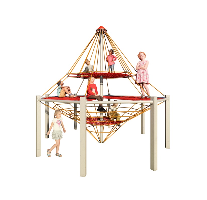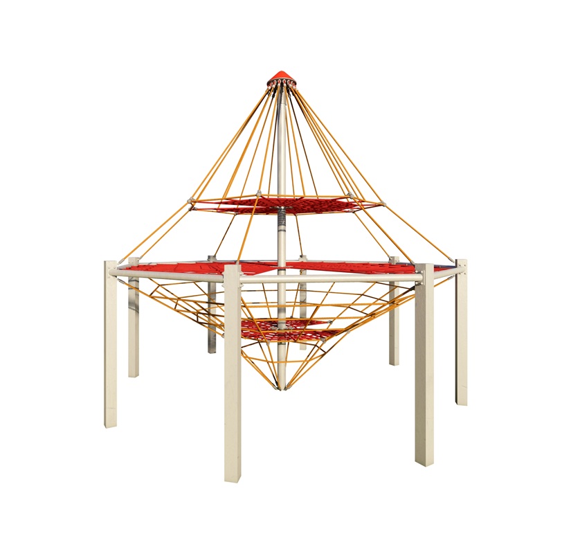 Mineralien Rubi concentra en un solo módulo lo que más valoran los ayuntamientos: reto de trepa 3D, alta afluencia con seguridad y una estética que anima a quedarse. Integra cuerdas Hércules —con alma de acero y recubrimiento de alto rendimiento—, uniones sin aristas y herrajes protegidos. Resultado: durabilidad real, tacto agradable y reparación por tramos si alguna cuerda sufre más de la cuenta.